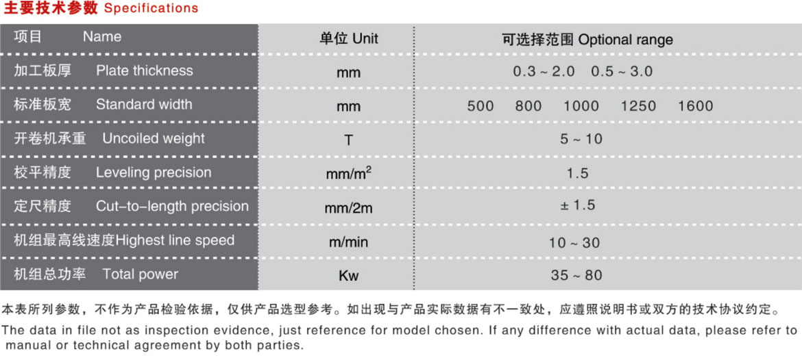 性能特點: 由開卷機、導向糾偏裝置、校平機、定尺裝置、剪板機、電氣控制柜等部分組成。 可根據(jù)用戶需要另配上料小車、過度臺、輸送出料及碼垛等選配裝置。